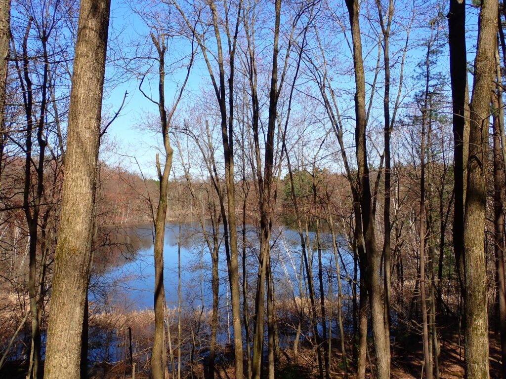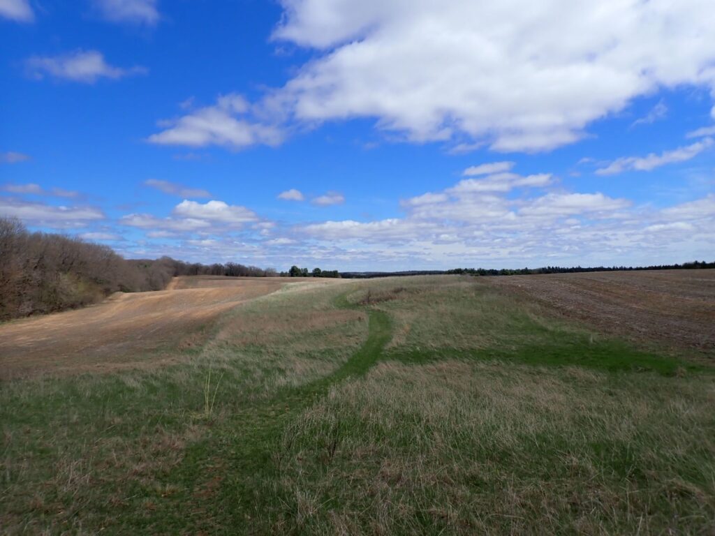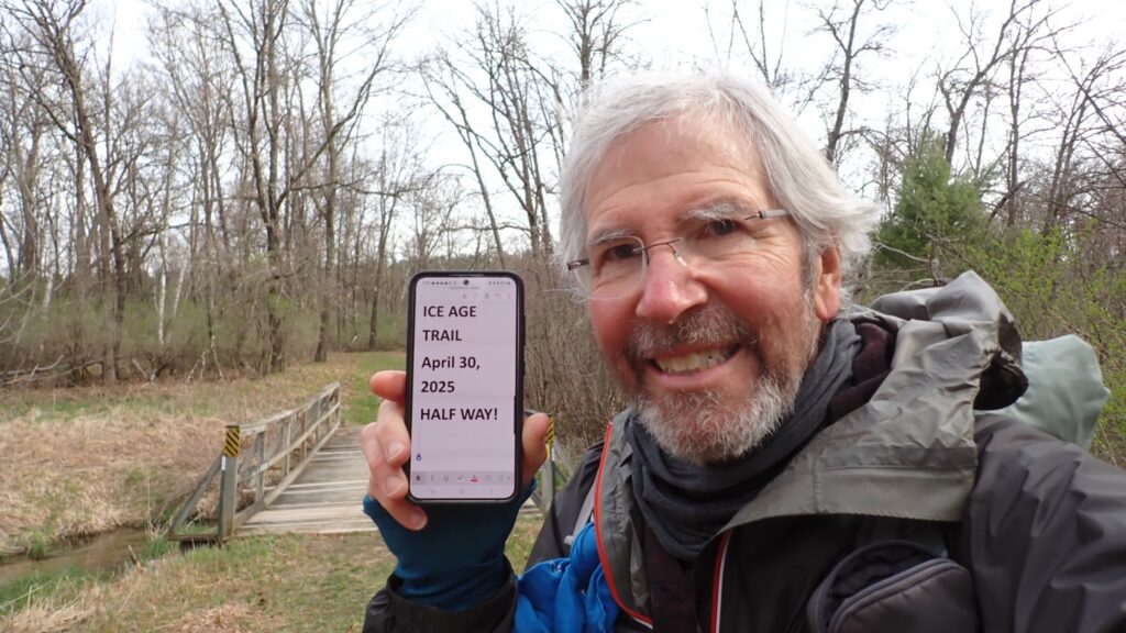 It was 65 and sunny on April 26, a perfect day for hiking anywhere, including past the huge corn fields and dairy farms. A detour off tbe roads led to the three-mile long Skunk and Foster Lakes segment. It was a beautiful Saturday, and I met several day hikers. One of the hikers was Ruth, a volunteer for the IAT and the sister of Ruby, the kind woman who transported me off the chilly Wisconsin River area and to the town of Merrill.