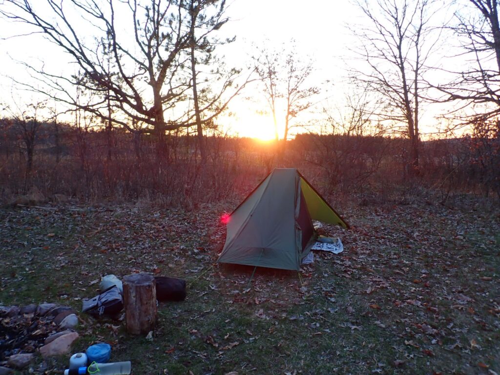 That evening of April 26, I camped just outside of the tiny town of Sheridan, which has a tavern! The campsite is on private property, and includes a tiny cabin IAT hikers can use. I slept in my tent, but encountered ticks for the first time on this trail. The warmer temperatures have waken the ticks.
