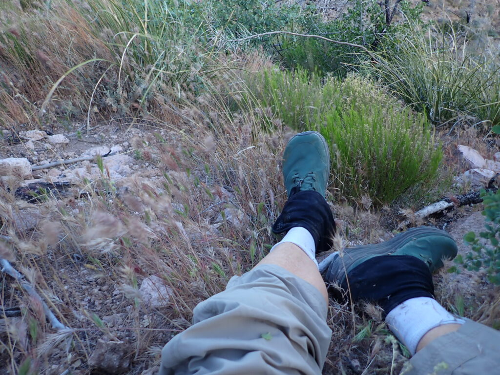 I assumed I had a severely sprained ankle. I assumed I needed to hike forward to the road that the AZT crossed 6.4 miles ahead. I had nearly 3 liters of water, which would be sufficient. The FarOut guide had several important facts about the place 6.4 miles ahead. A water tank was dispensing clear water according to hikers’ reports. I had planned to fill my bottles there anyway. Excellent! Getting to the road would require about 2,200 feet of steep climbing and 1,800 feet of descent. The hike out would not be easy, but that’s what the wilderness gave me. It was Forest Road 83 according to the FarOut guide, and only “high-clearance vehicles” could reach me from the highway 5 miles and 2,000 vertical feet away. Who had such a vehicle and how could I contact someone?