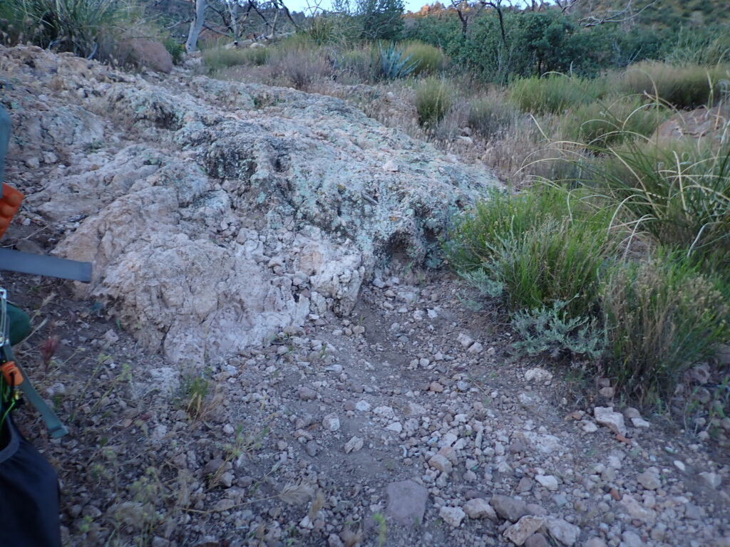 It was mile 332 of the Arizona Trail on April 5 when I stood on top of a large rock and looked down where I needed to take another step downhill. The sun had just risen, and the dawn light was enough to switch off my headlamp. Since leaving my campsite at 4:30 a.m. my feet had already skidded several times on the loose, sandy soil on steep downhill terrain that sometimes had little rollers that attached to the tread of my shoes like marbles. I was inside the Superstition Wilderness at 4,500 feet elevation, where trees were short and scrubby, or just black skeletal remains from the wildfires that burned in recent years. There is little foliage to absorb the infrequent rainfall, thus pushing rocks to resting places on the trail I was hiking on. Every step I had taken that morning was measured and cautious.