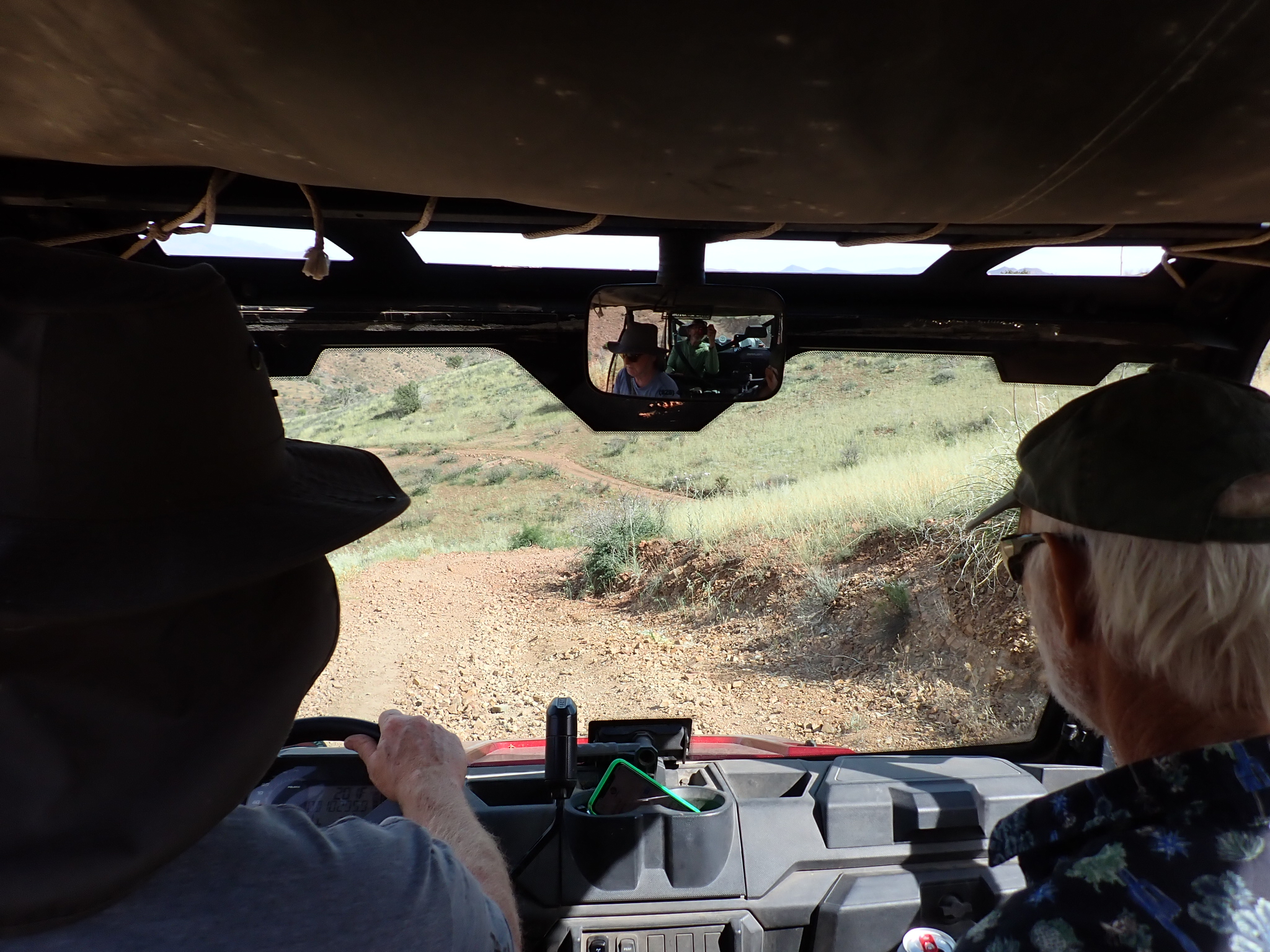 Scott drives the Polaris on Road 83. Eric is in the passenger seat while I held tightly on a bar in back