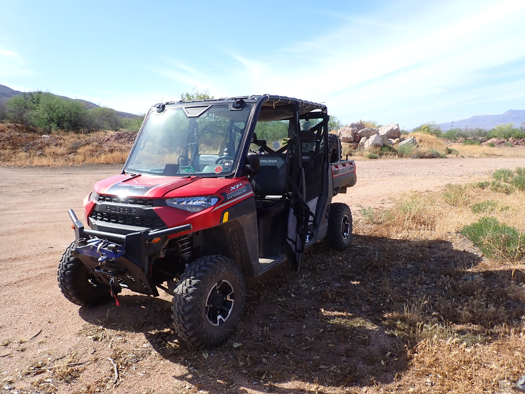 As I collected water, I heard the distant sound of a vehicle. I looked down the hill and saw the Polaris as its engine revved and headed toward the water tank. Amazingly, Scott and Eric arrived just 20 minutes after I did. After introductions, Eric opened a cooler that contained cold cans of beverages.